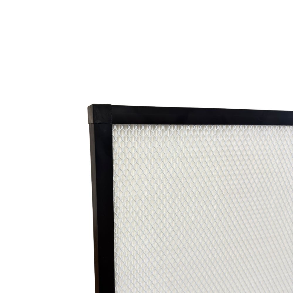 Filtro plano para caudales medios-bajos. Fabricado con marco de plástico y disponible con diferentes protecciones y espesores para todo el rango de alta eficiencia. Rendimiento y eficiencia en un diseño compacto.